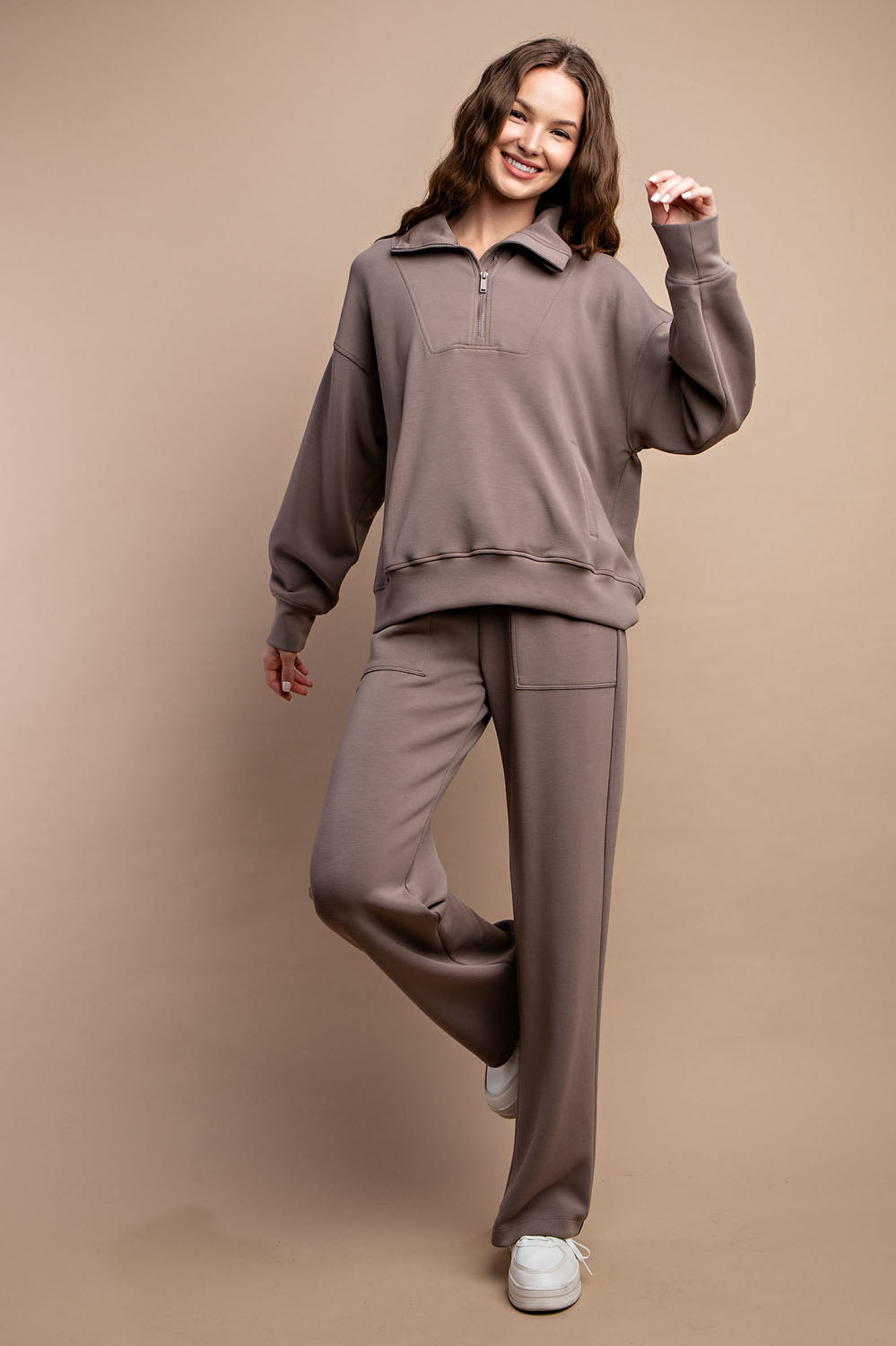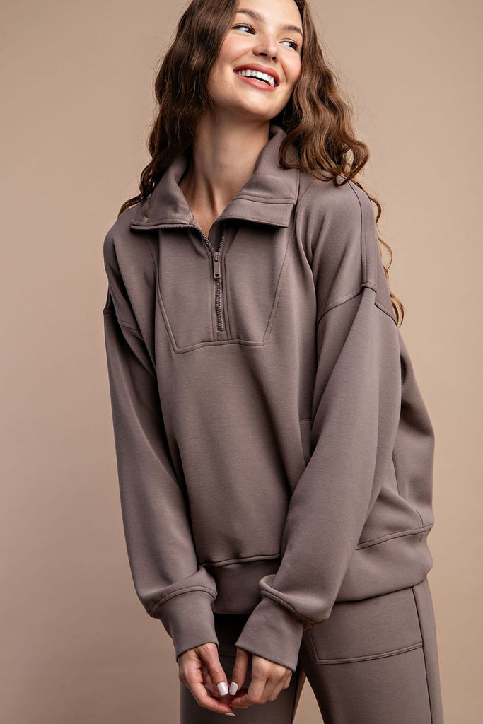Hot Girl Walks Mocha Modal Scuba Quarter Zip Pullover