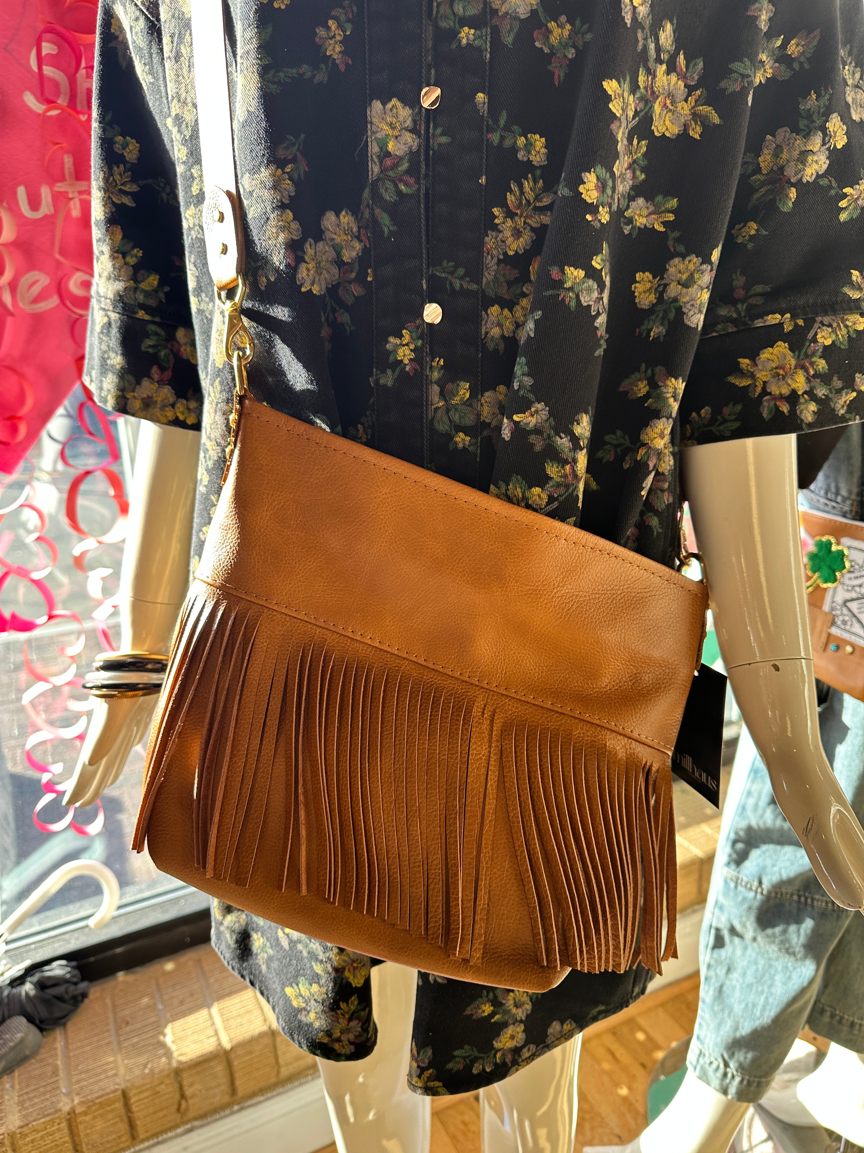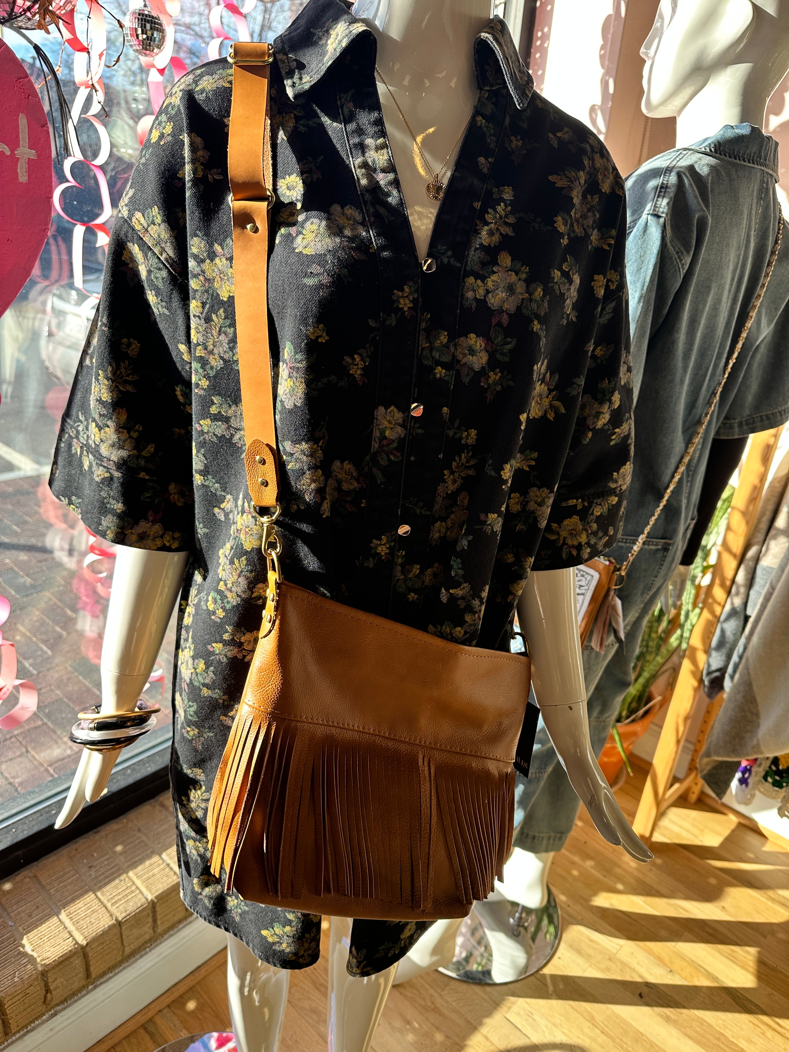 Reba Fringe Bag w/Strap - Cognac