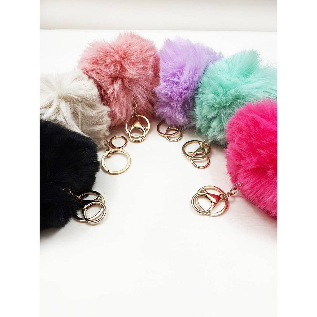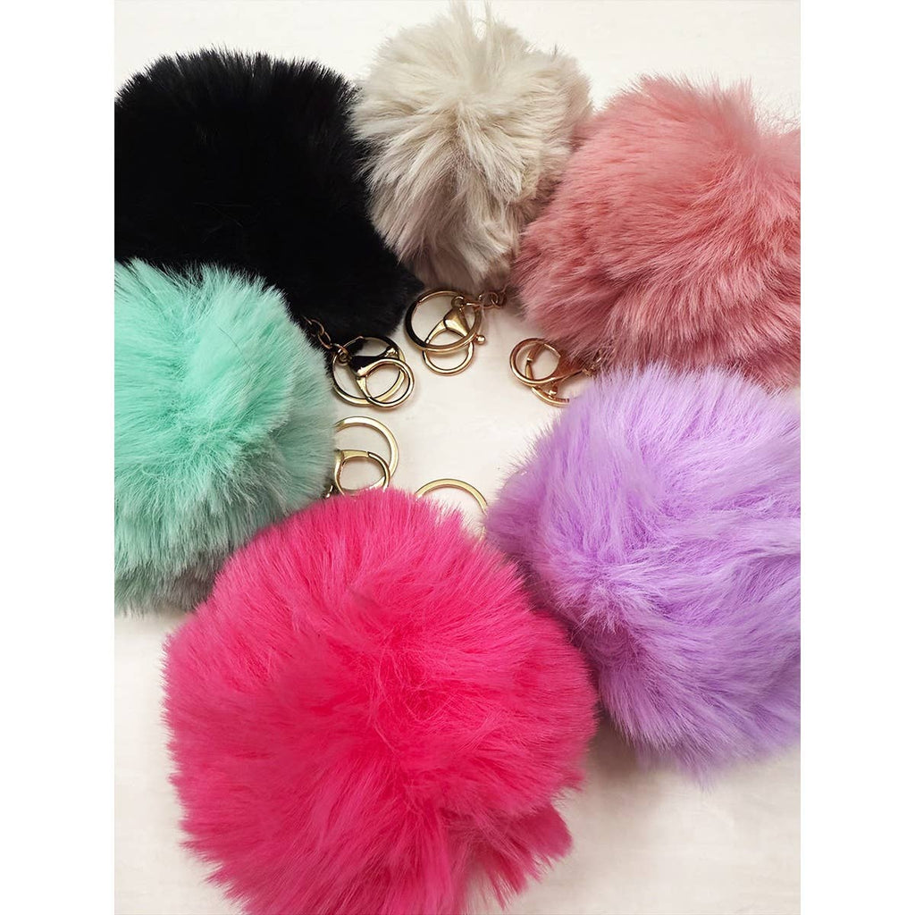 Soft Bright Tone Jumbo Pom Pom Keychain -Faux fur pom pom keychain are in 6 different colors, variety as picture show, various of color pom pom balls help you match with different style accessories. Soft feel and High Quality Fur.