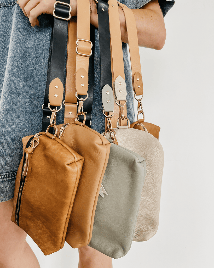 Our leather is all sourced from the local NC upholstery industry. We pride ourselves on never buying a full hide, and never shopping commercially when sourcing our leather. This gives us the ability to stick to a “no waste” leather business model, utilizing smaller partial hides and what upholsterers deem as scraps for our products to reduce waste.