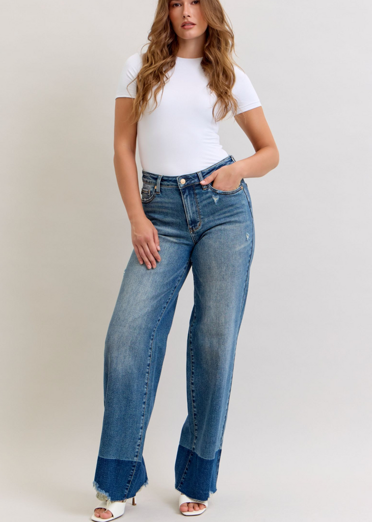 Mallory Vintage Wash Wide Leg Distressed Denim (Curvy Available)