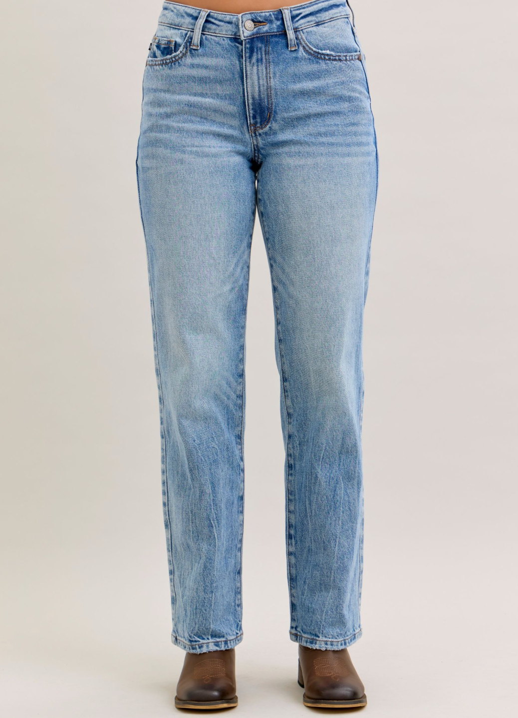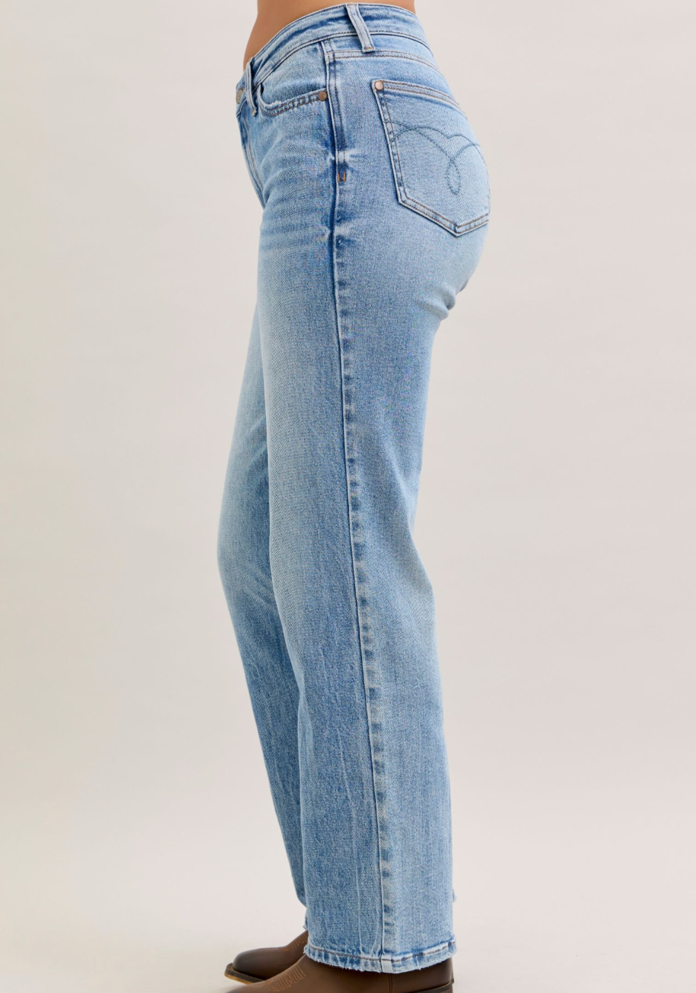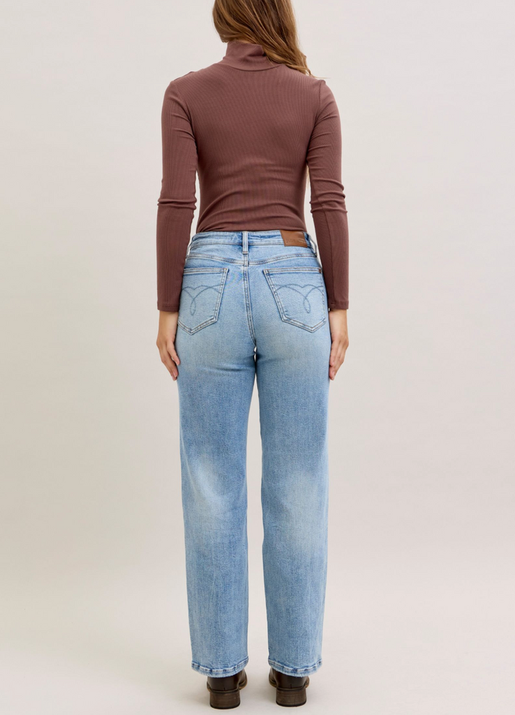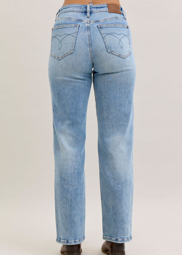 Meet your new denim obsession! The Jenny Mid Rise features our signature Judy Blue stretch magic—rigid cotton up front for that crisp, structured look, paired with stretchy comfort through the back so you can actually move. Light wash, straight leg, mid rise perfection. These jeans are basically your favorite pair that finally learned how to behave. Effortless style meets all-day wearability in one seriously good pair.