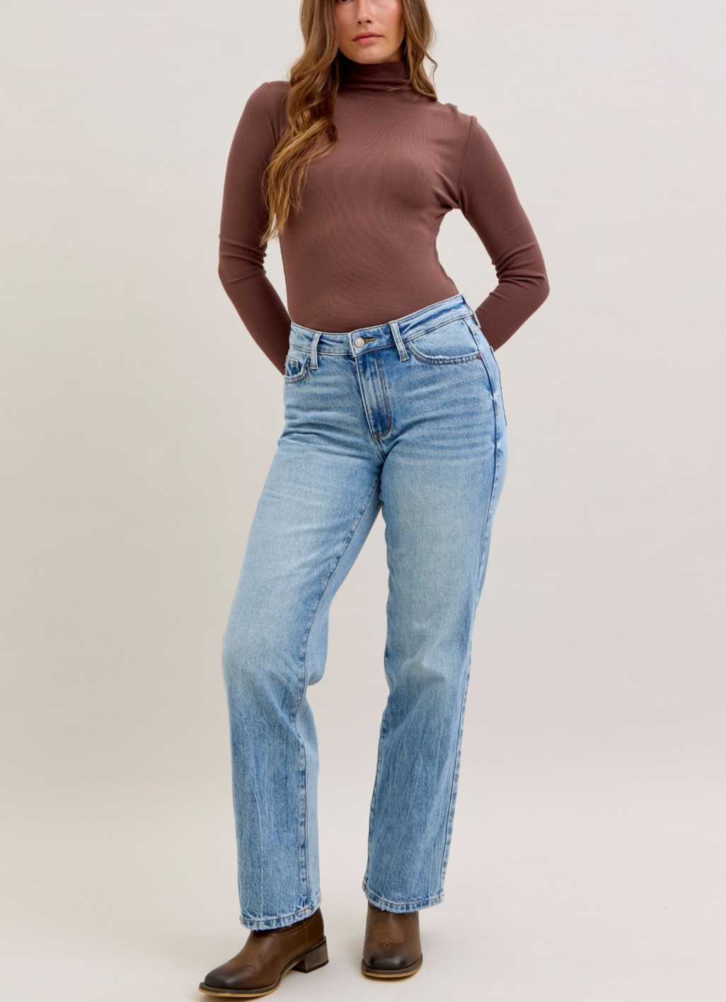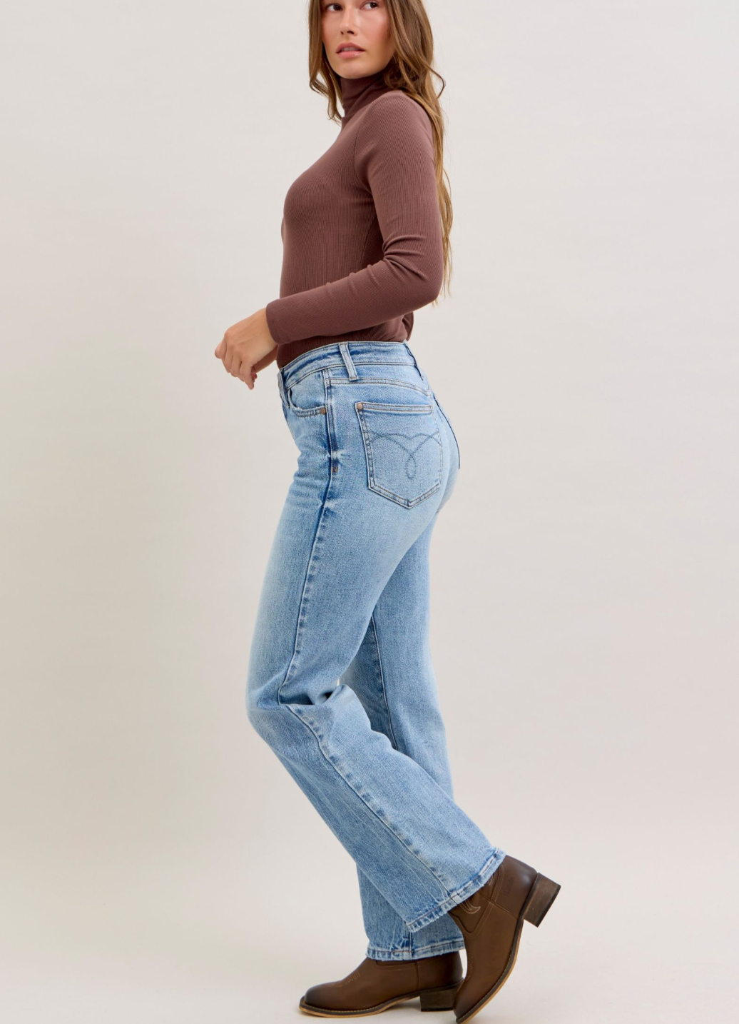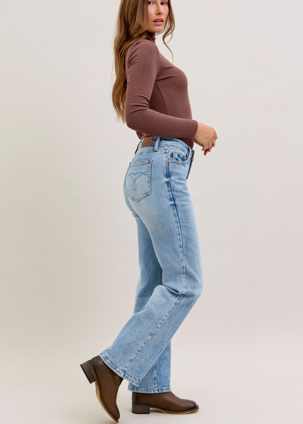 Meet your new denim obsession! The Jenny Mid Rise features our signature Judy Blue stretch magic—rigid cotton up front for that crisp, structured look, paired with stretchy comfort through the back so you can actually move. Light wash, straight leg, mid rise perfection. These jeans are basically your favorite pair that finally learned how to behave. Effortless style meets all-day wearability in one seriously good pair.