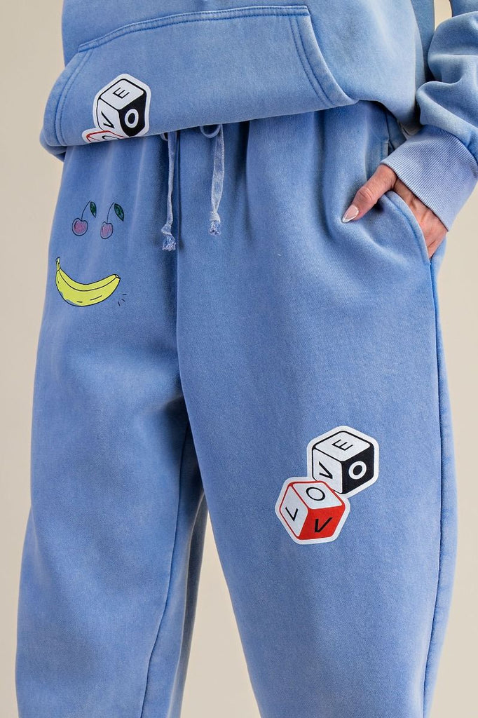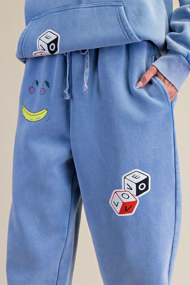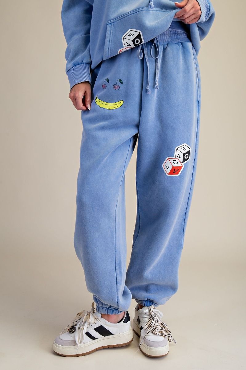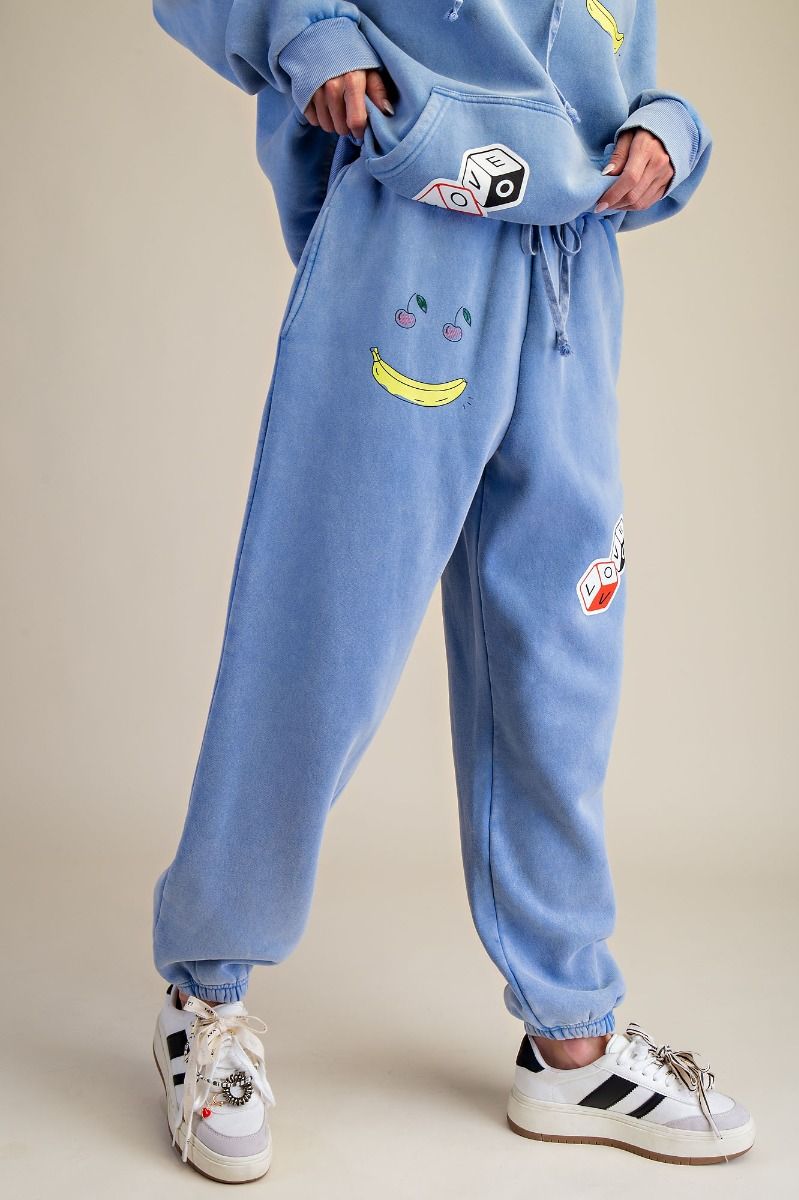 Get cozy and quirky with the BANANAS Patch Sweat Pants! Pair it with the matching top! These terry knit joggers feature a smocked elastic waistband with an adjustable tie for the perfect fit, plus side pockets for stashing secrets. The relaxed, loose fit and cinched bottom cuffs keep things comfy and cool, while the mineral wash and funny print detailing bring a fresh, playful vibe. At 40" length and a 13.5" waist, they’re made for lounging in style or matching your favorite set. Who said comfy can’t be fun?