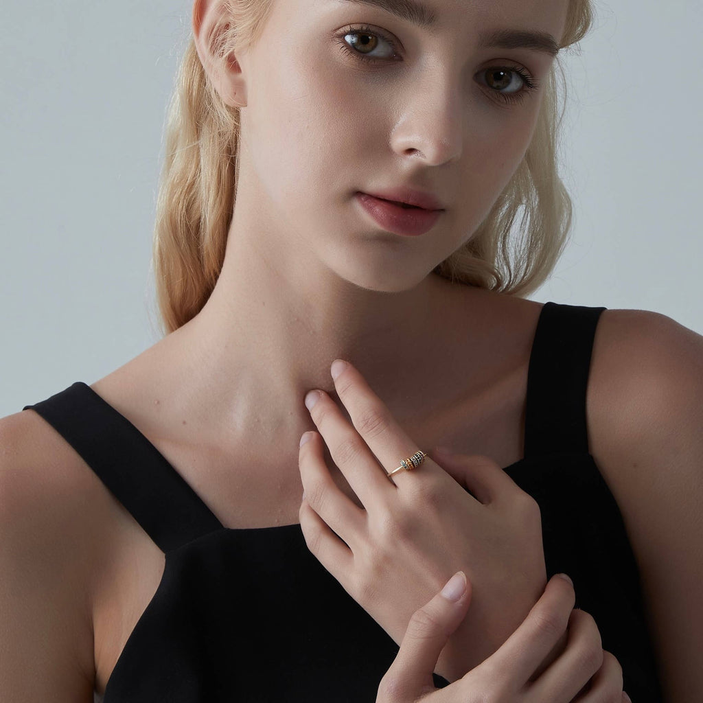 This ring is adjustable, although the design is simple, but with the small spinner balls, it is decompressed and stylish.