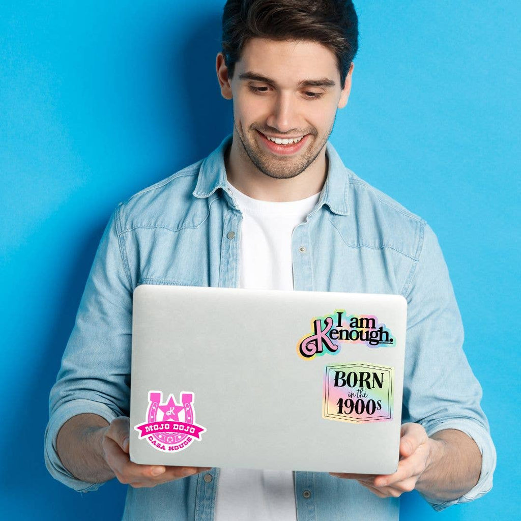 Did you know that kids call anyone born before 2000 from olden times? WELL NOW YOU DO. Your laptop. Your water bottle. Your car. If they don't stand for something, they'll fall for anything. Or is that people? Hm... This die cut holographic sticker features my signature hand lettering and design. Made from a durable vinyl with a laminate that protects your stickers from scratching, rain and sunlight.  Approximately 3 in x 3 in Please note:  Accessories not included.  But they look really cute, don't they?