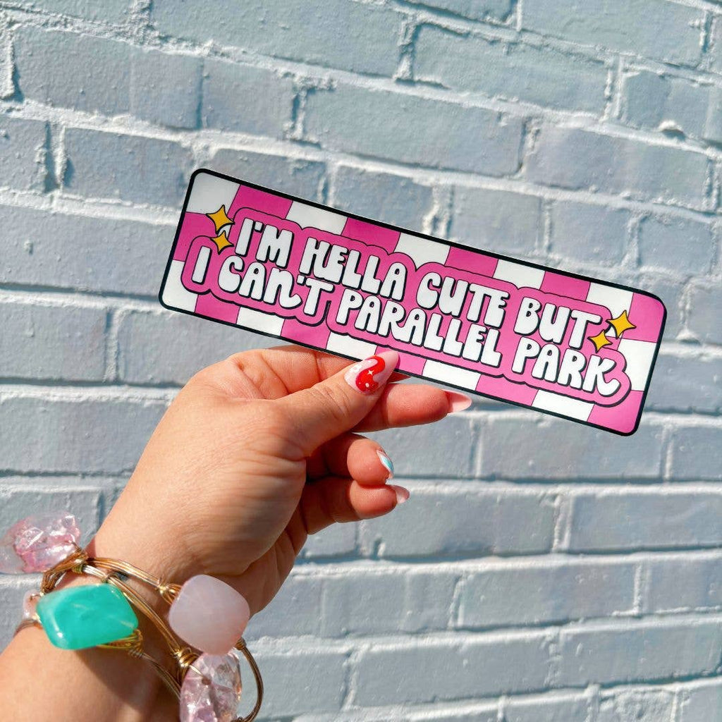 Hella Cute But Can't Parallel Park Girlie Bumper Sticker