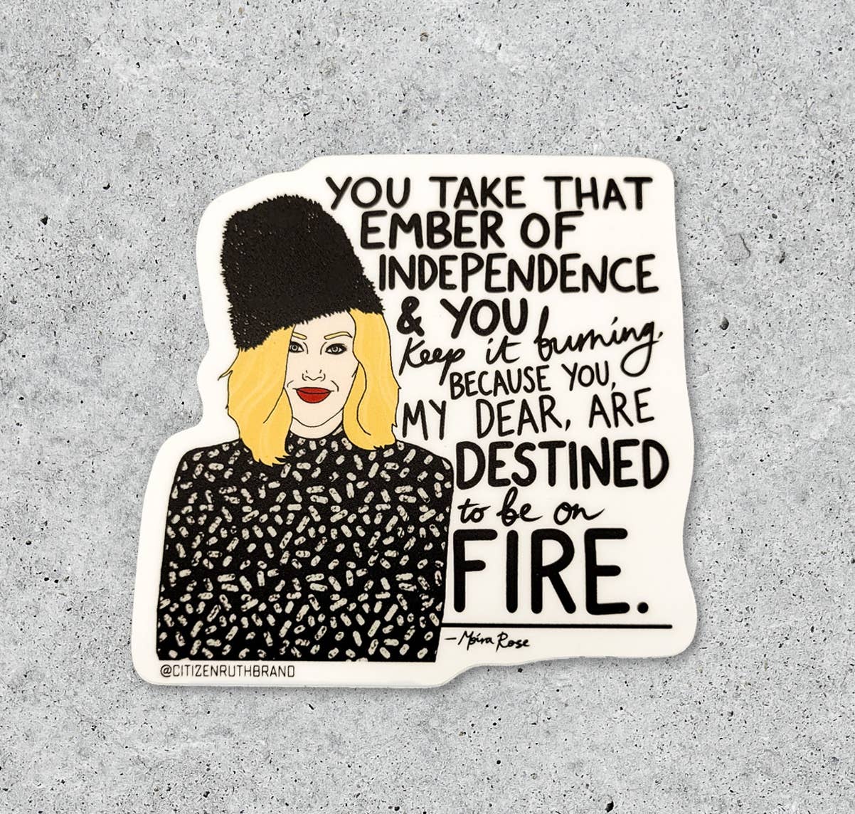 Who new Moira's words would be so poignant in these times? Moira Rose, Motivational Speaker. Artwork is licensed only to Citizen Ruth. Measures approx. 2.5"x3". Waterproof and UV resistant vinyl sticker. Amazing quality.