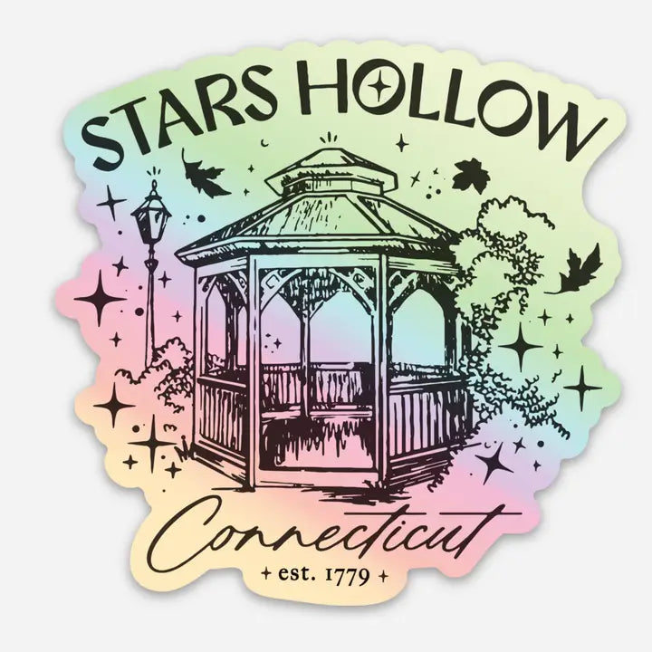 Add a touch of sparkle to your life with this Stars Hollow Gilmore Girls inspired holographic sticker. Featuring the iconic town name and a holographic finish, this sticker is perfect for any Gilmore Girls fan. Stick it on your laptop, water bottle, or phone case for a fun and quirky touch.