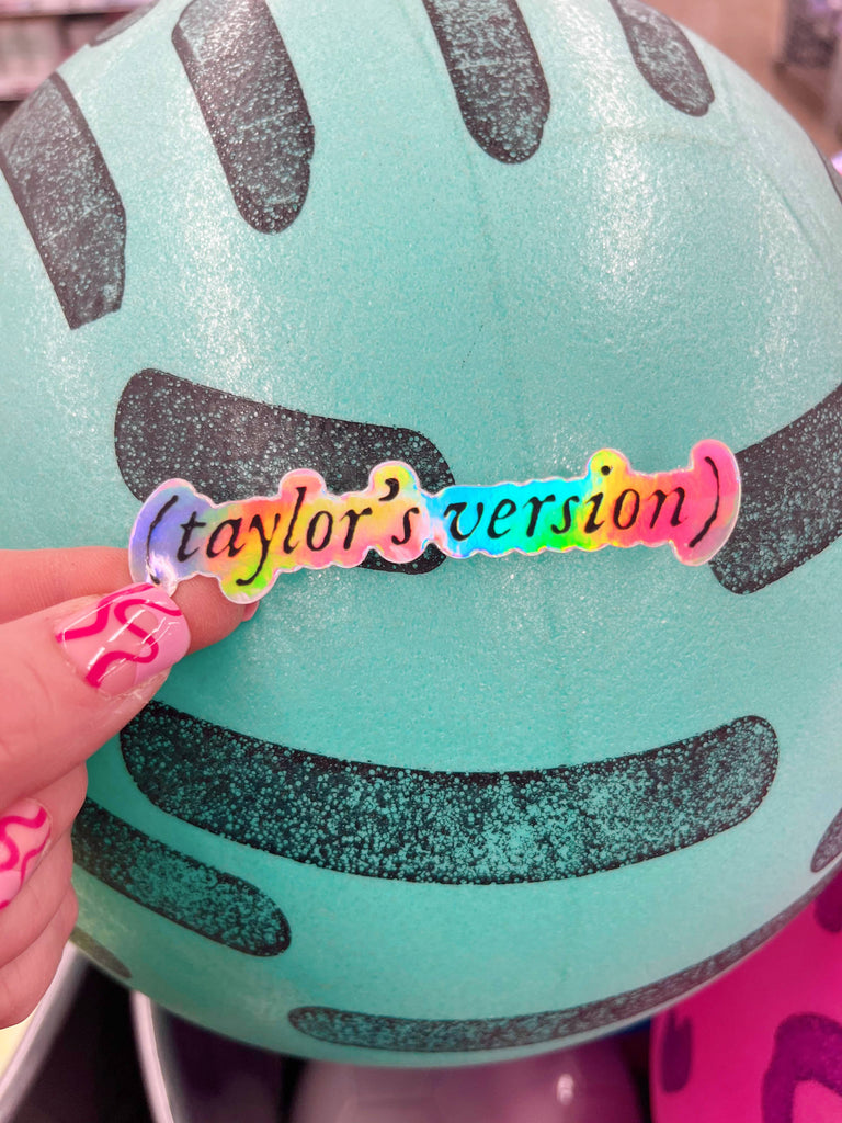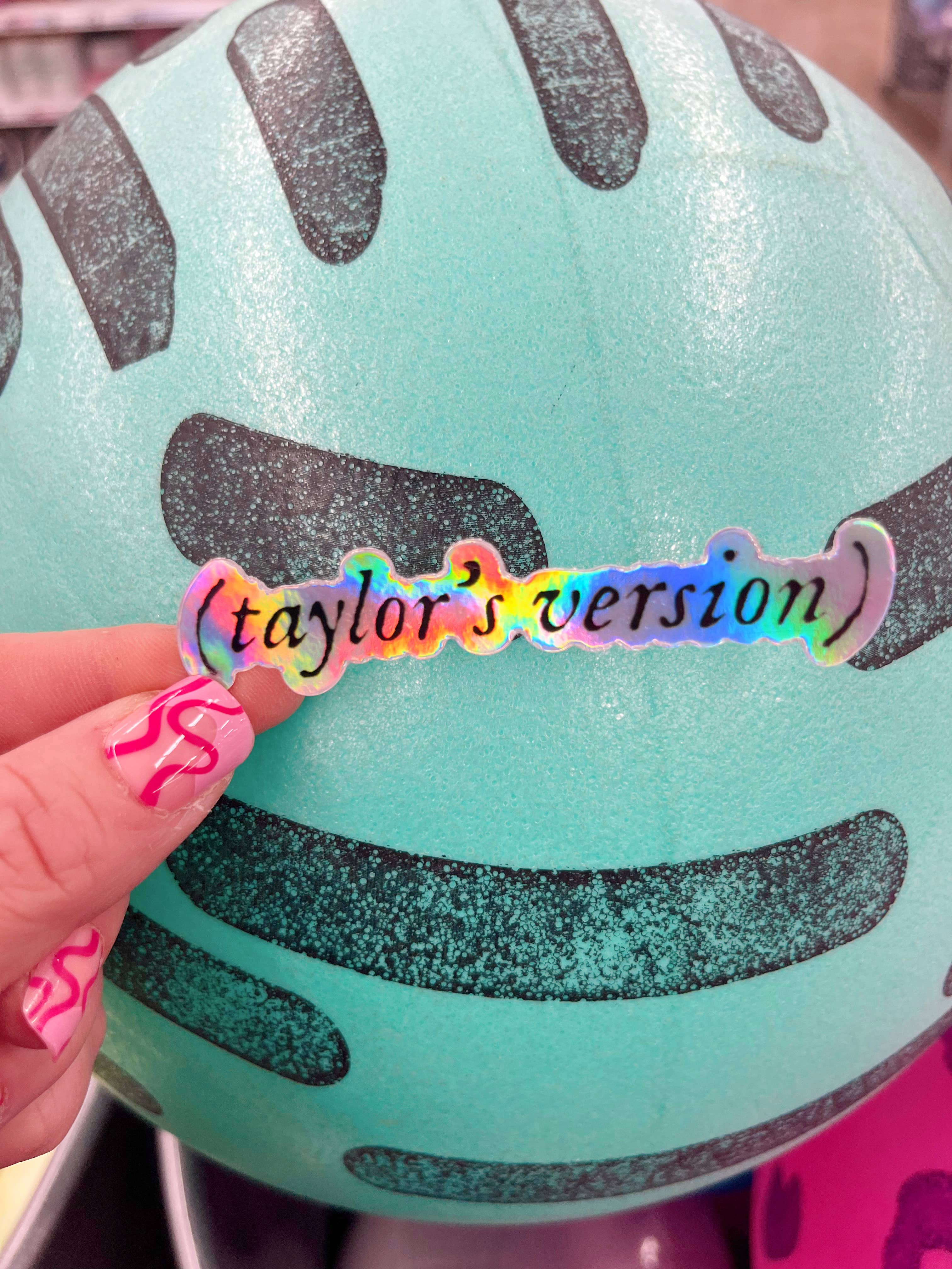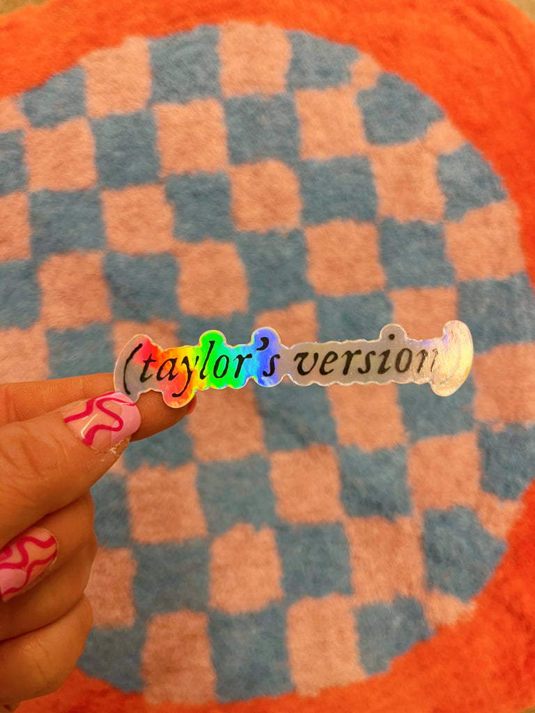 Add some sparkle to your life with Taylor's Version - the holographic Taylor Swift sticker! It's a must-have for all Swifties who know we ONLY listen to Taylor's Version, and will make any surface pop. Perfect for laptops, water bottles, and more! Get yours now and show off your love for Tay Tay!