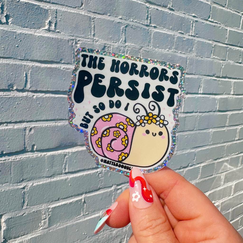 The Horrors Persist But So Do I Funny Silly Snail Sticker