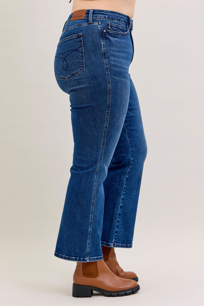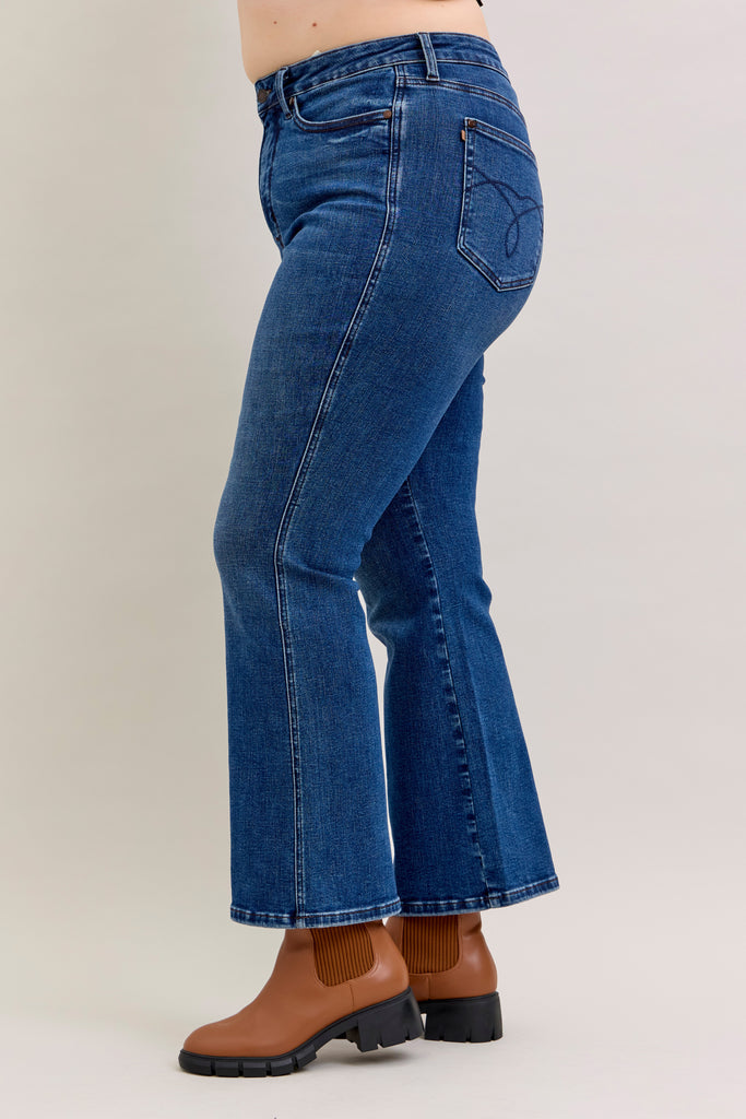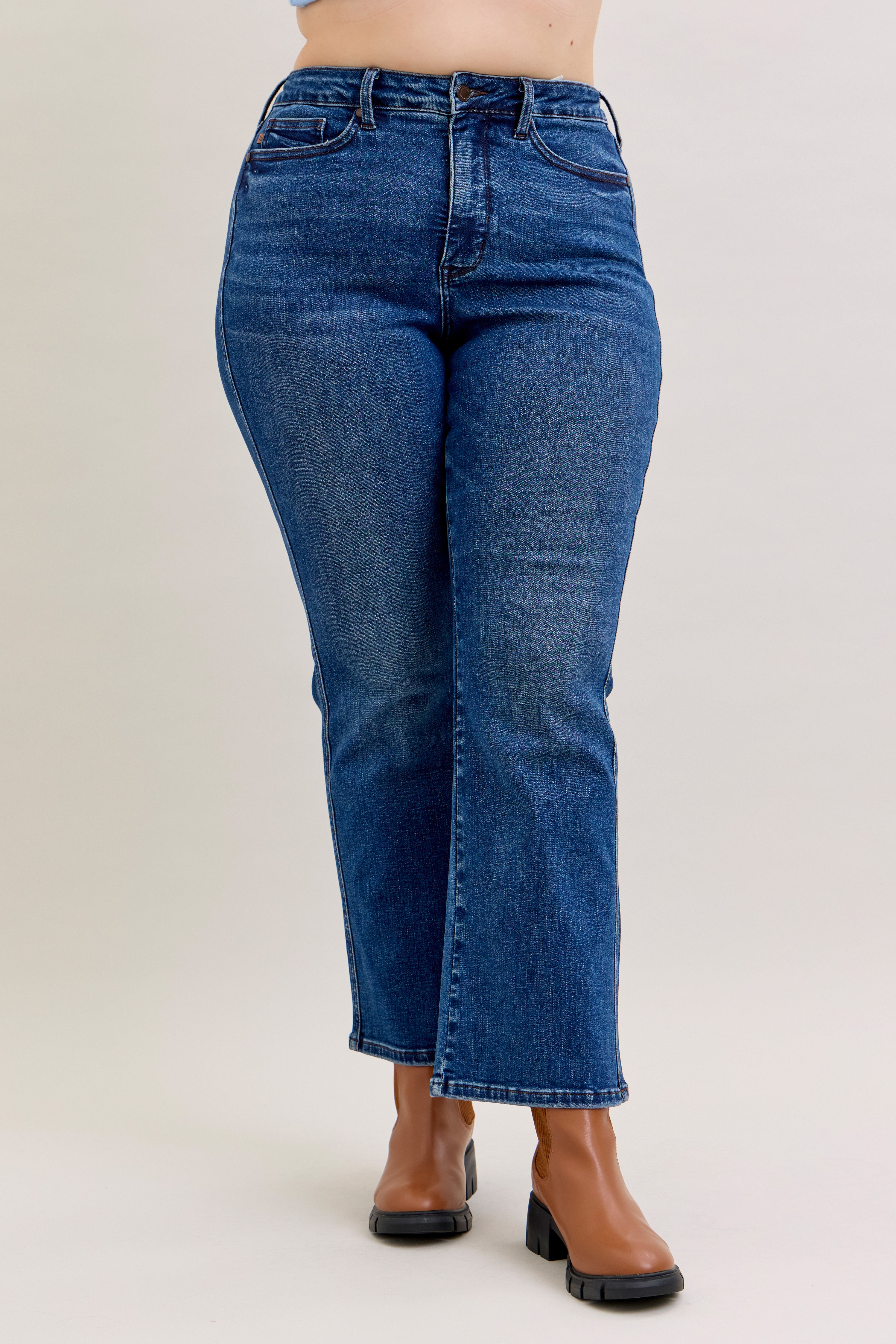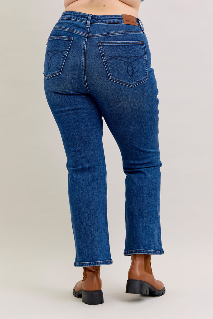 Get ready to rock the classic look with Karsen Short Inseam High Rise Bootcut jeans by Judy Blue! The high rise design and signature stretch material provide the perfect fit, while the tummy control panel helps you feel confident all day. Complete with a flattering boot cut leg and a sleek dark wash, these jeans are a must-have for any wardrobe.