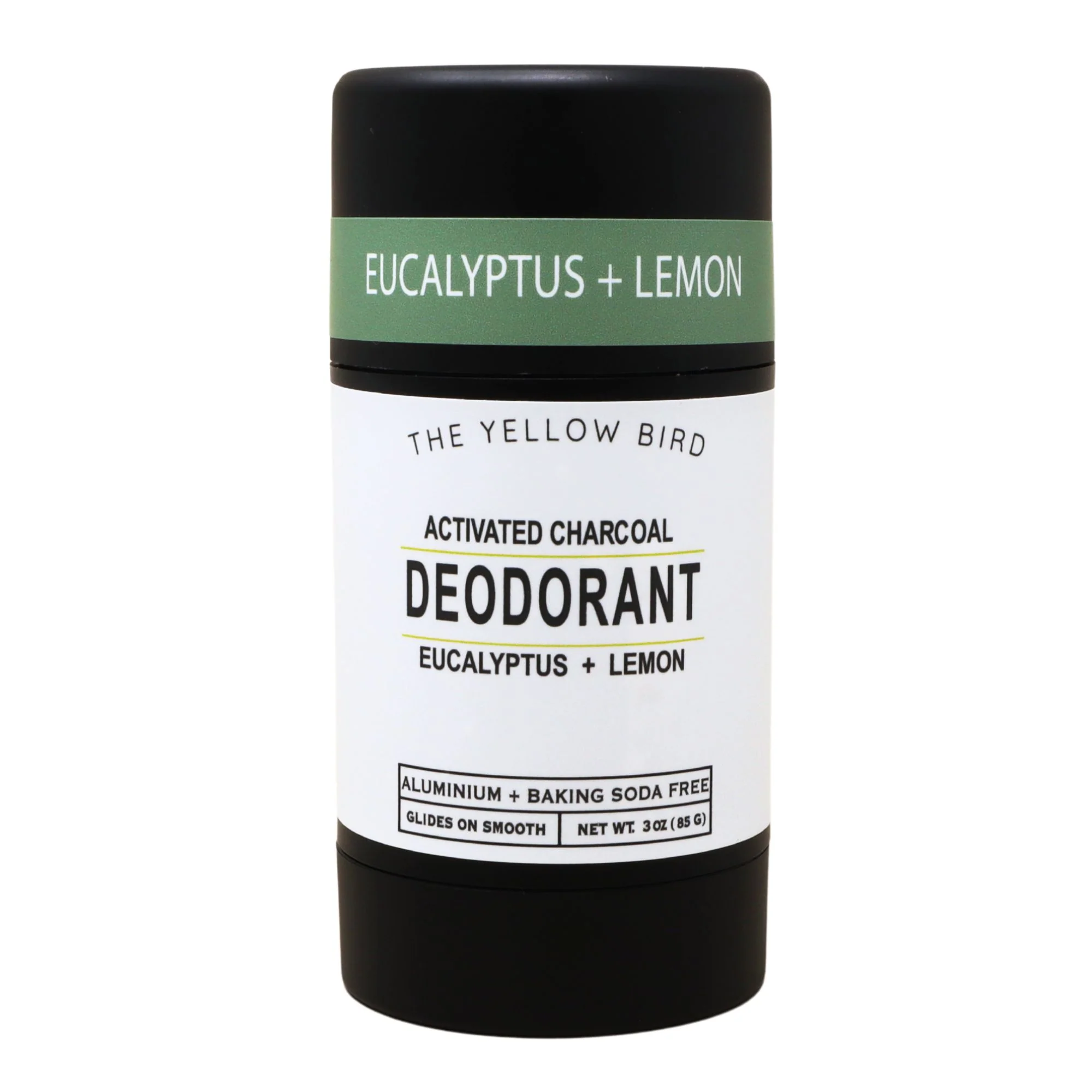 Full Ingredient List: Eucalyptus Lemon: Fractionated Coconut Oil, Stearyl Alcohol, Arrowroot Powder, Magnesium Hydroxide, Zinc Ricinoleate, Eucalyptus Essential Oil, Lemon Essential Oil, Organic Coconut Oil, Organic Shea butter, Jojoba Esters, Activated Charcoal