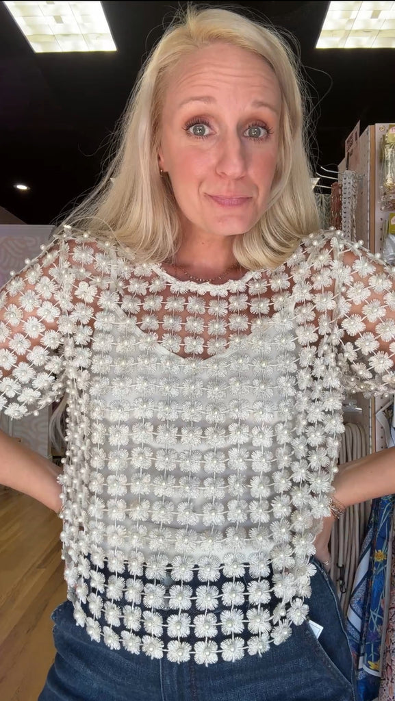Urban Cowgirl Indigo Floral Mesh Long Sleeve Top - Curvy Available