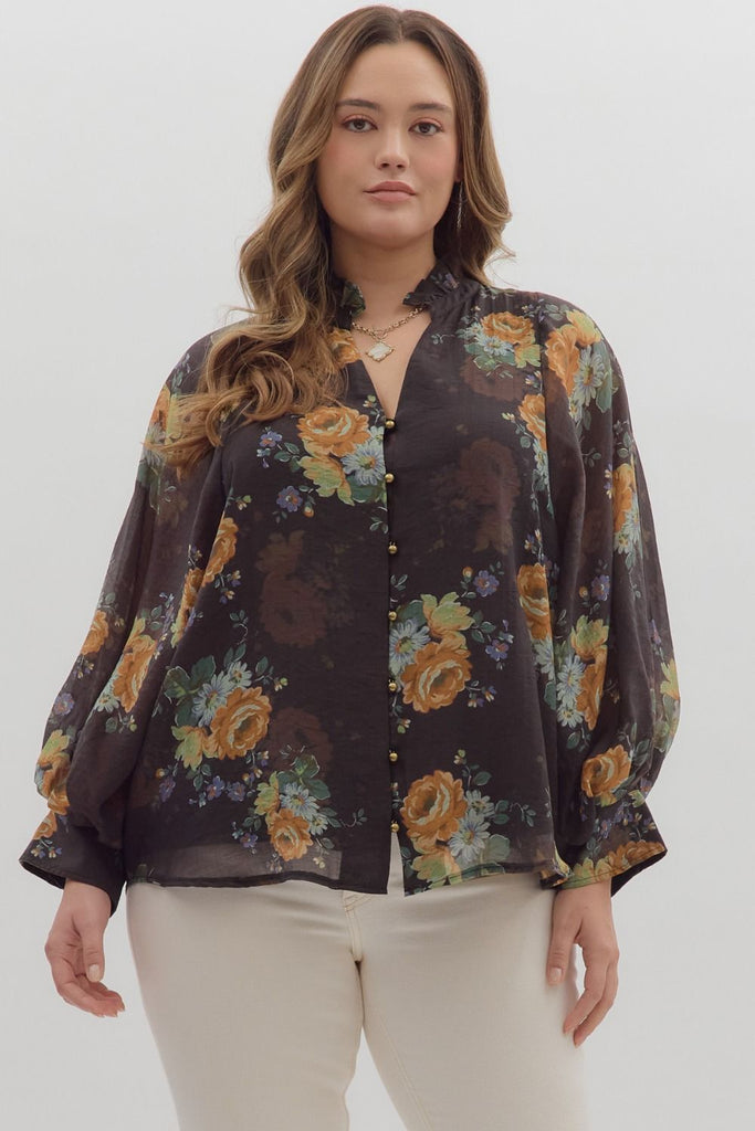Midnight Gardens Floral Long Sleeve Blouse - Curvy Available