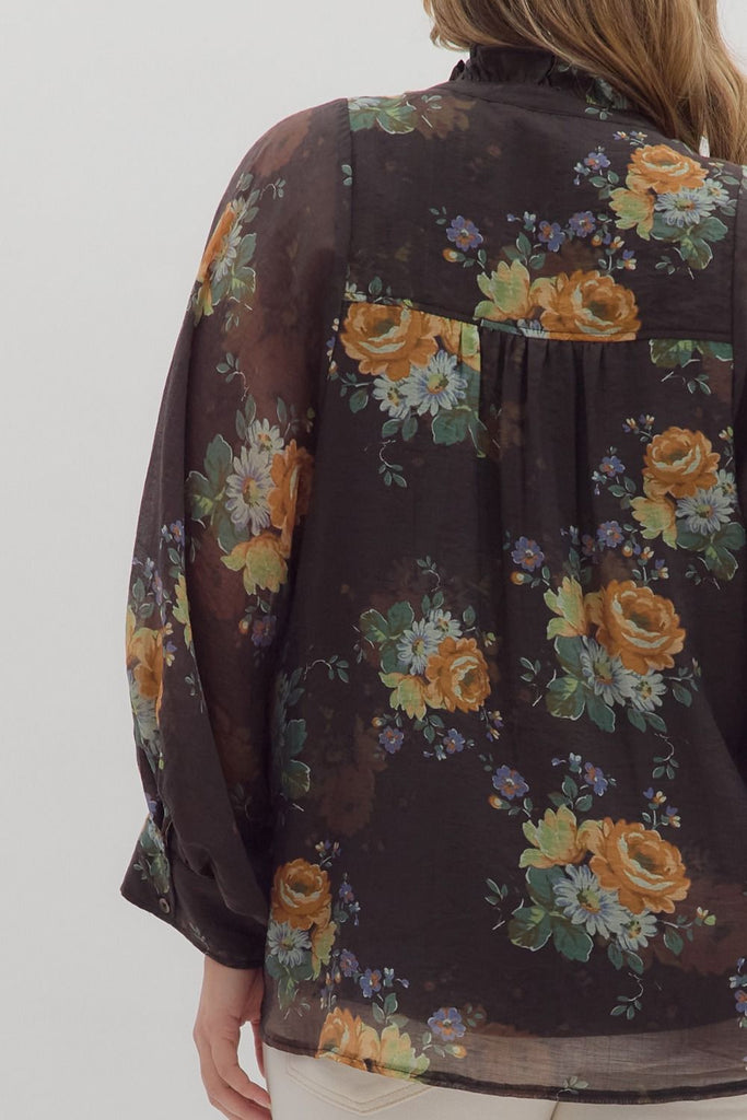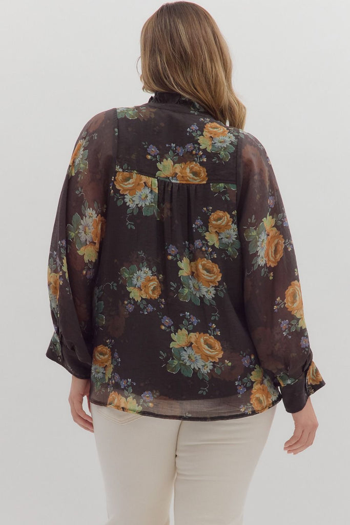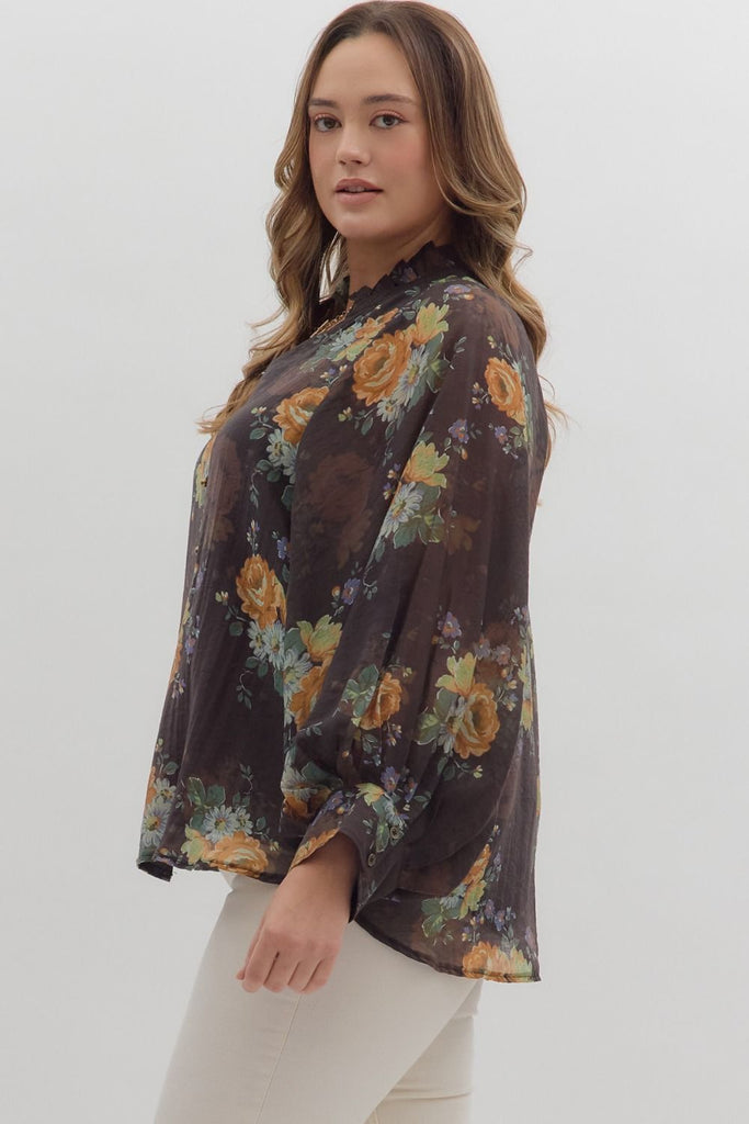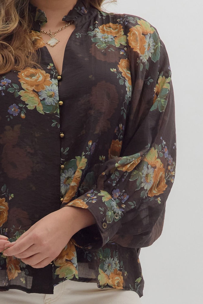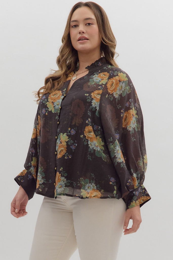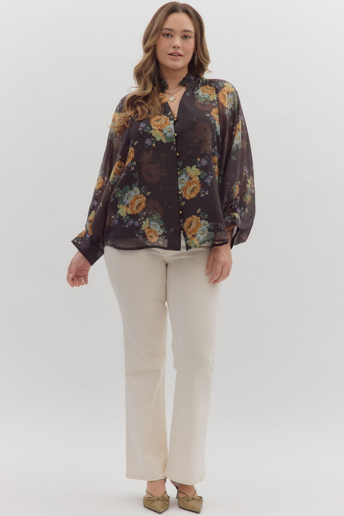Midnight Gardens Floral Long Sleeve Blouse - Curvy Available