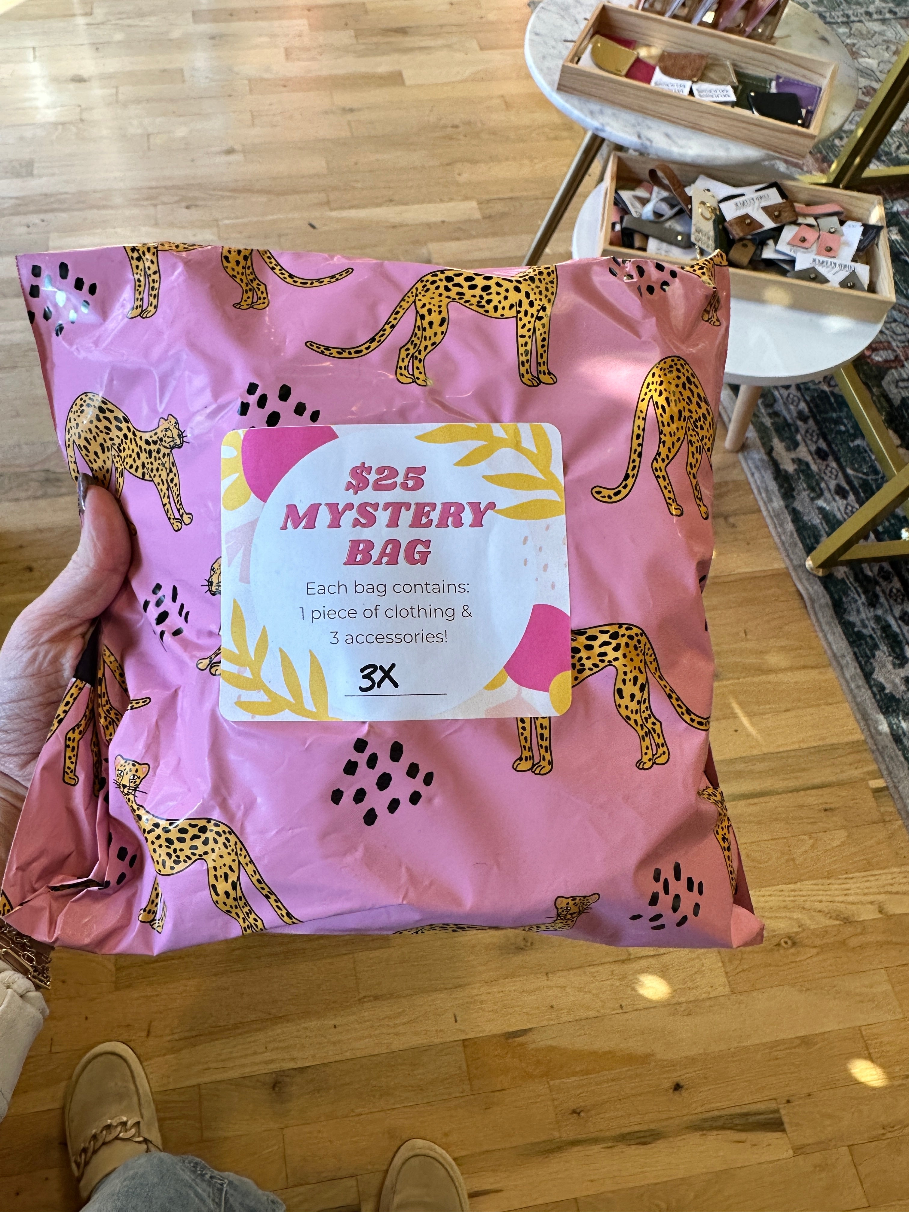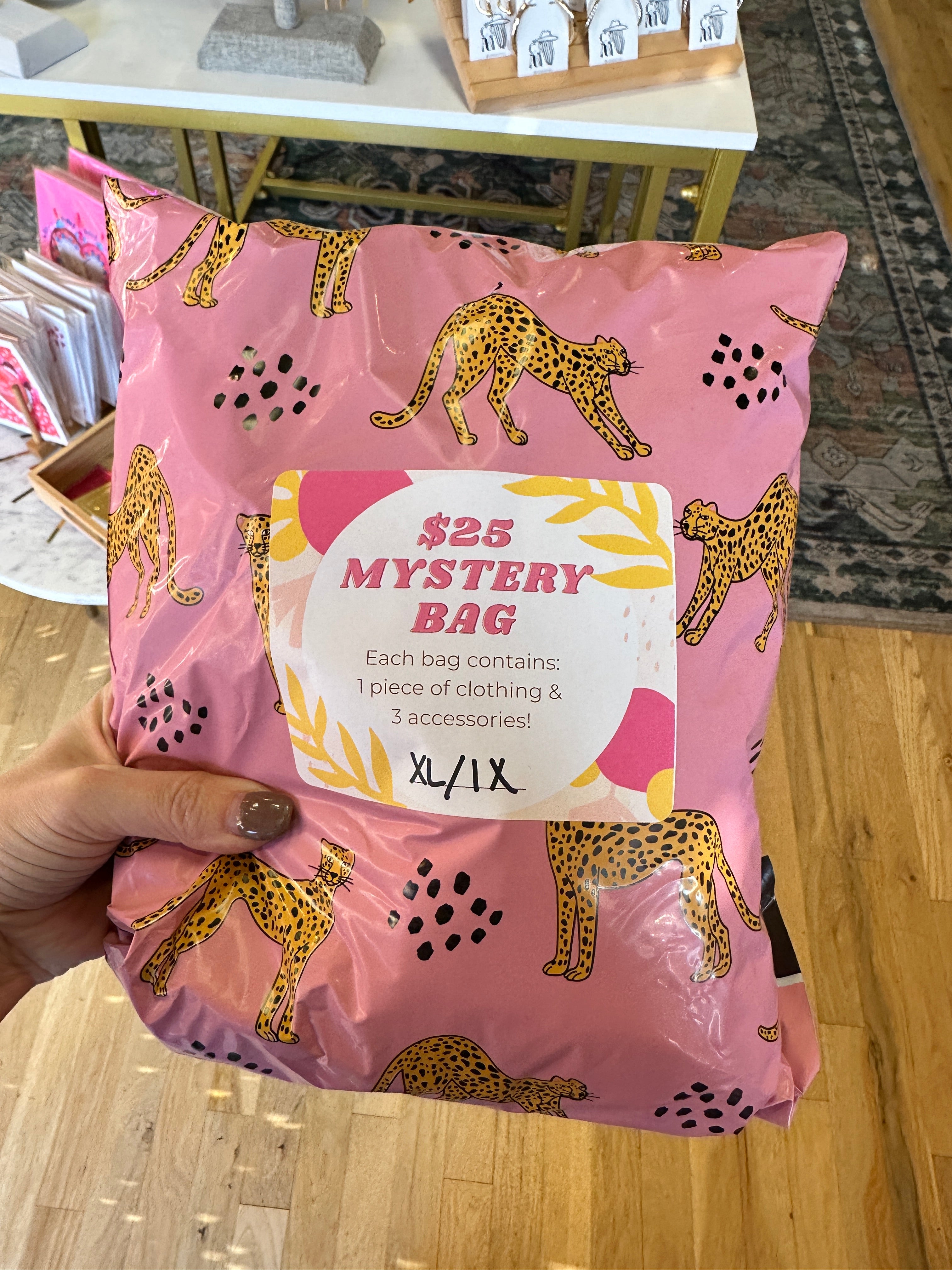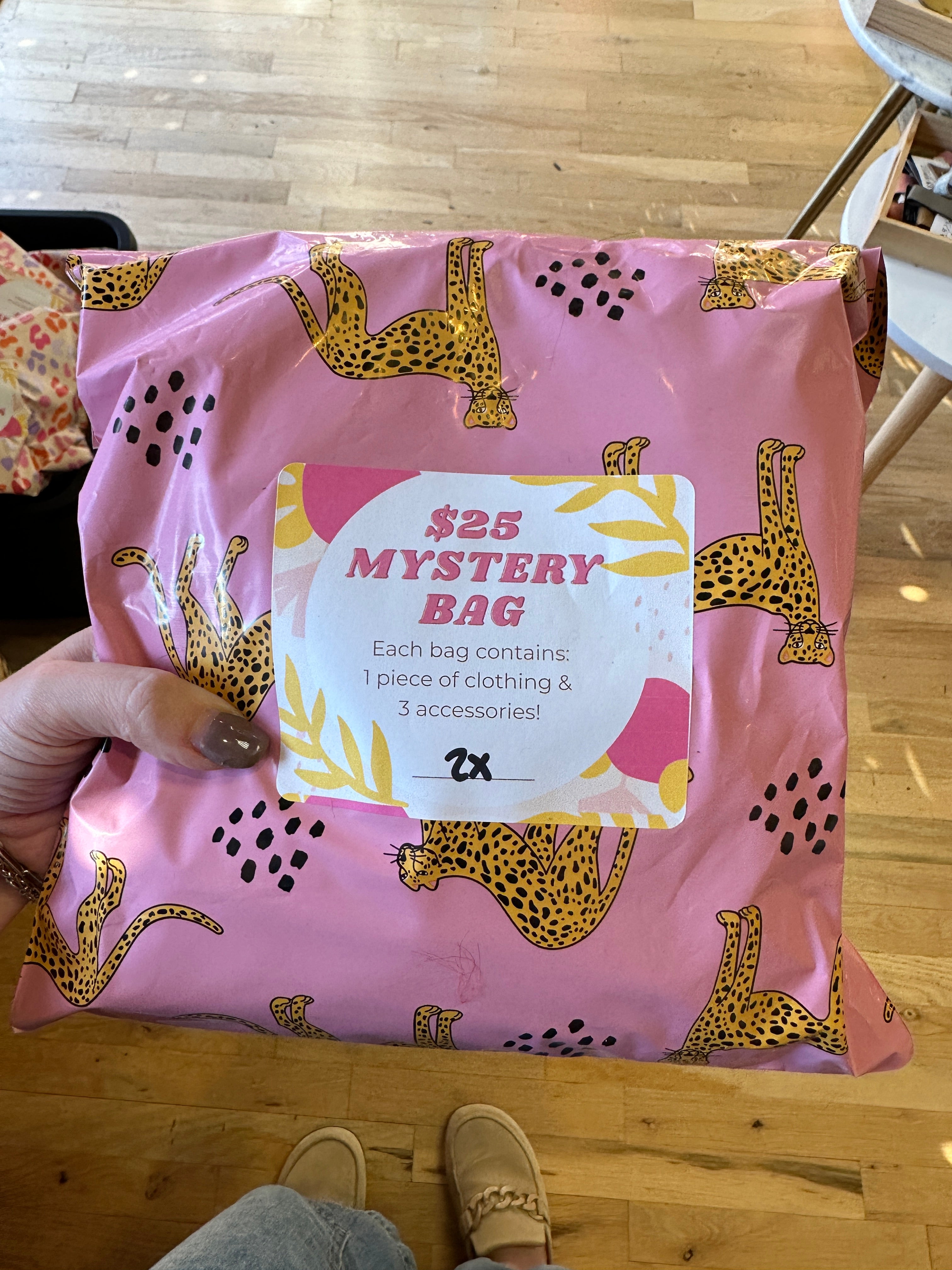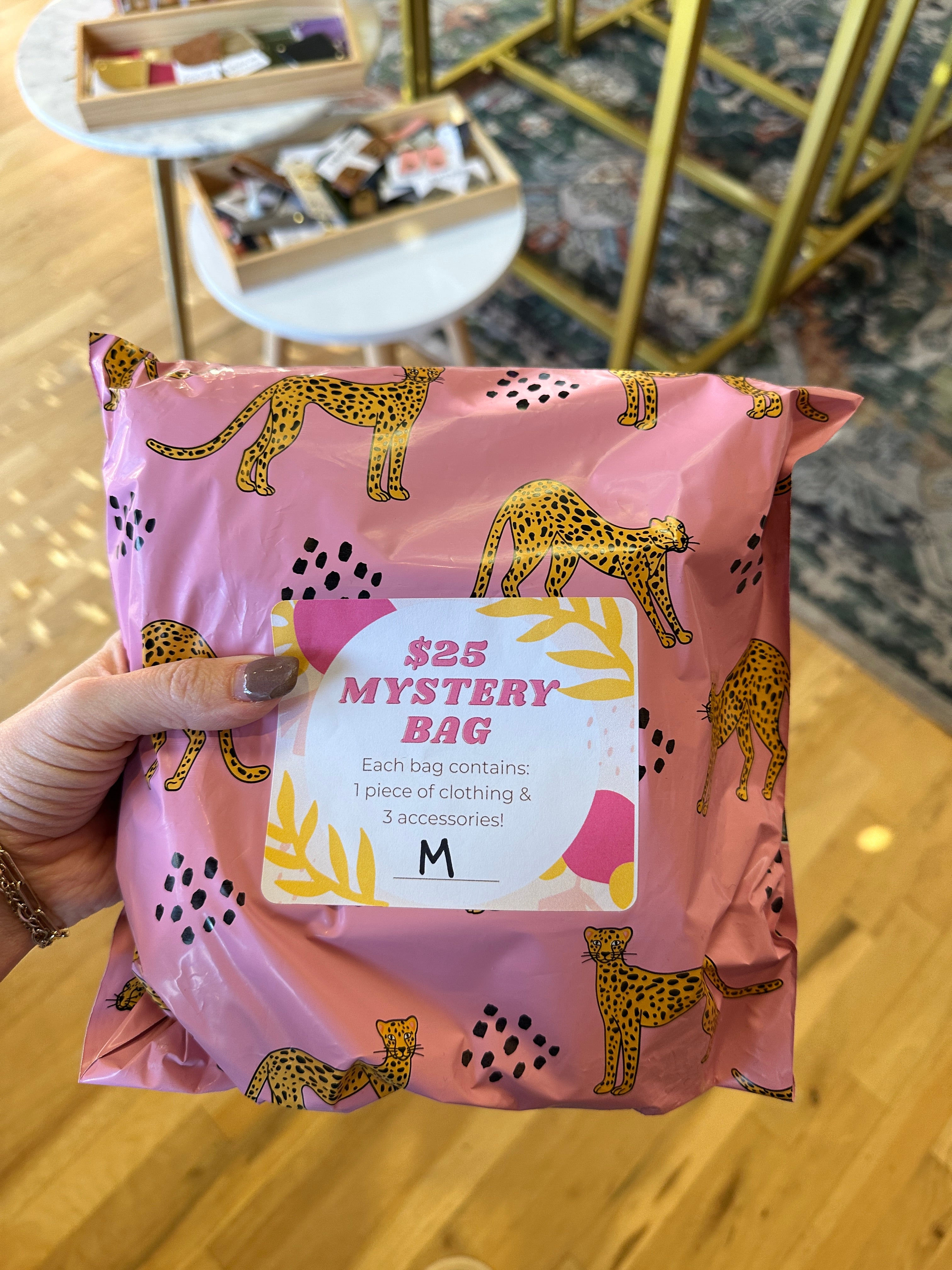 Get ready for a surprise with our Clothing Mystery Bags! Every bag is a unique mystery filled with one clothing item and three fun accessories. From earrings and bracelets to phone leashes and charm kits, you never know what you'll find. Our cozy athleisure styles are true to size for a comfortable fit.